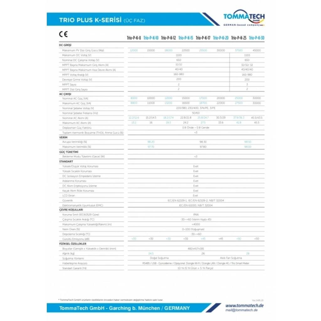 TommaTech Trio Plus K 15 kW Üç Faz İnverter