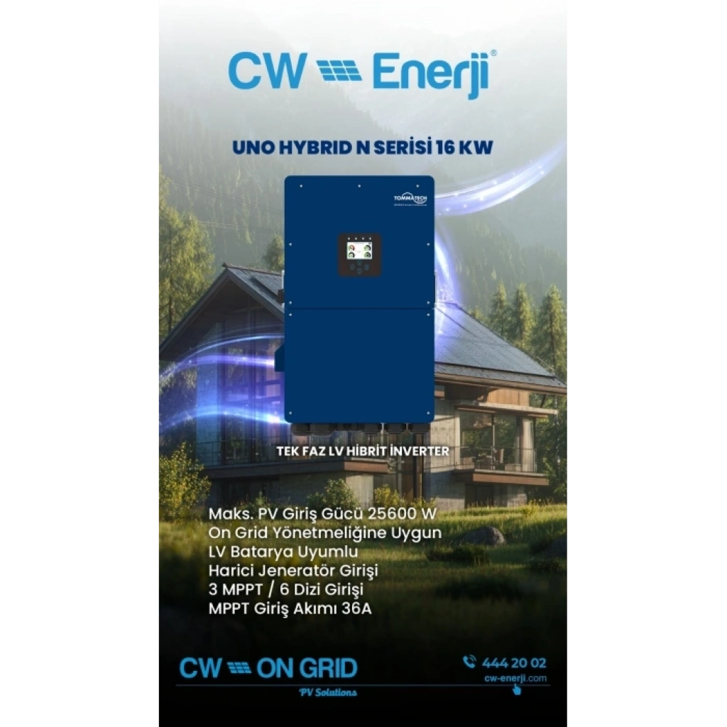 TommaTech Uno Hybrid N 16 kW Tek Faz Hibrit İnverter